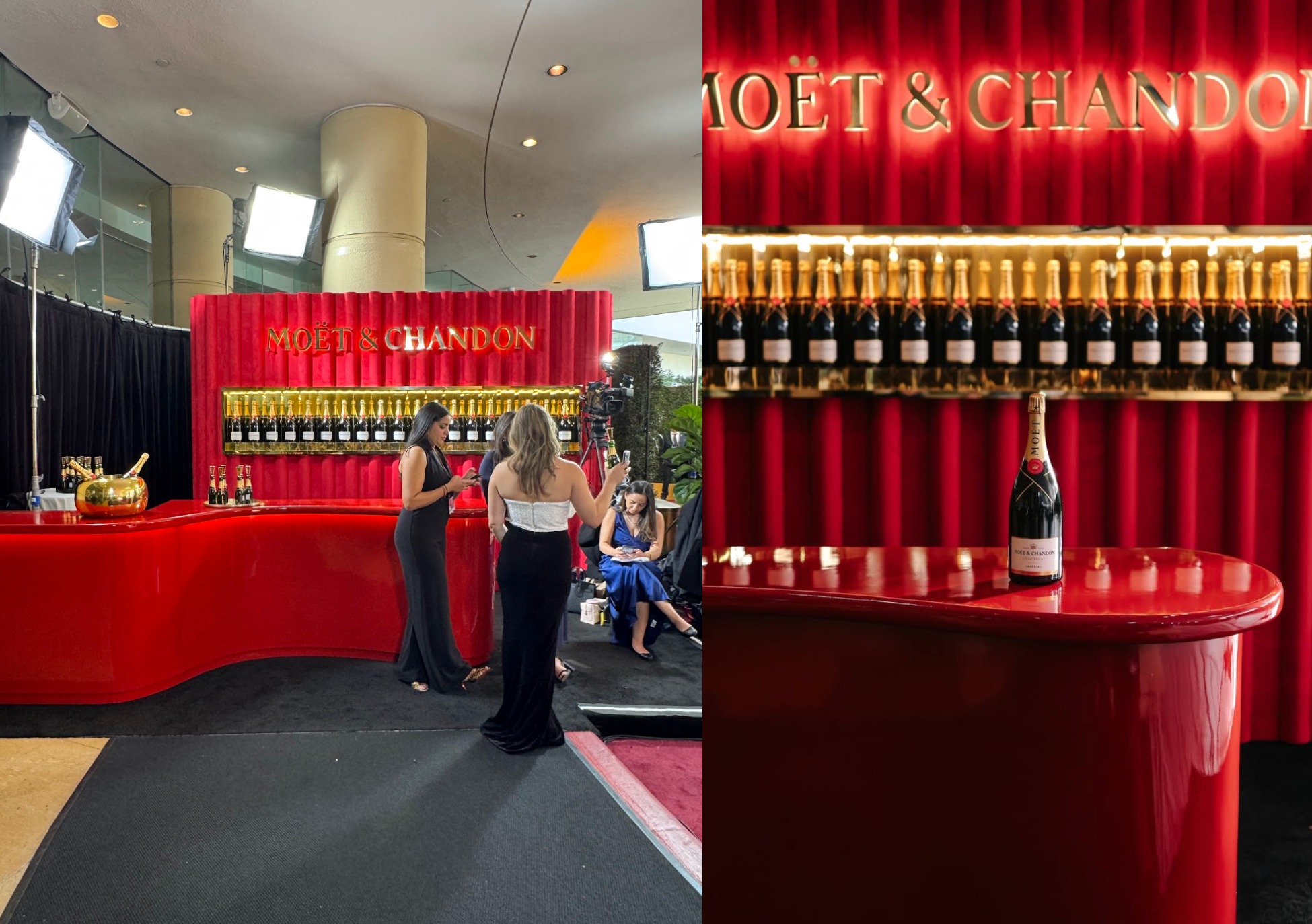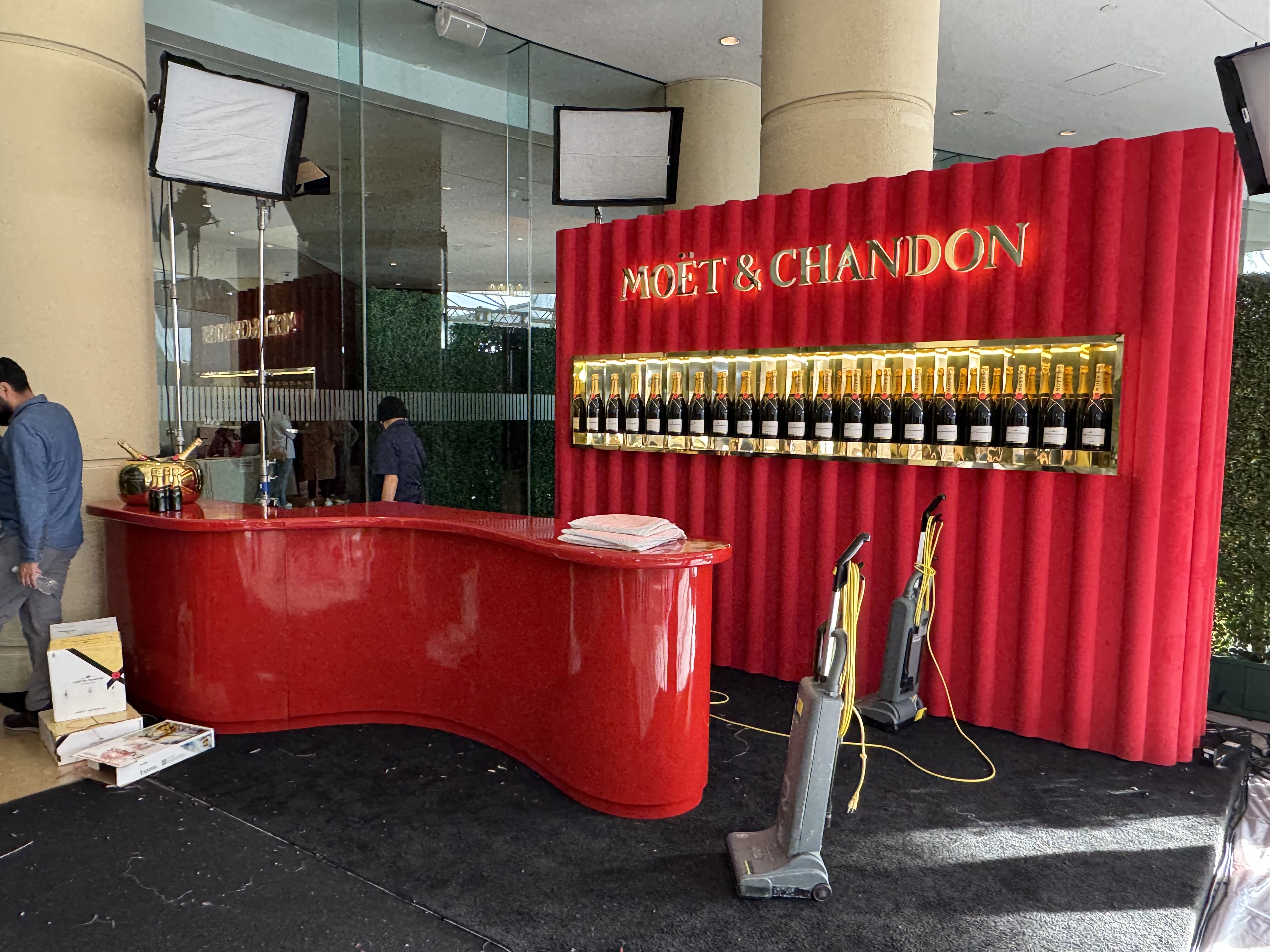Tractor Vision has been honored to partner with Moët & Chandon at the Golden Globes for the past several years, returning each season to raise the bar on one of the most glamorous brand environments in awards season. The build centers on a custom-fabricated bar and backwall system, a curved red gloss bar with integrated white LED under lighting, high-gloss countertop, and a corrugated dowel back wall in matching red with dimmable warm LEDs, inset display shelving, and a backlit dimensional gold logo, all fabricated to travel in custom-built crating for annual deployment.. Every element is engineered for repeatability, built to withstand the road, arrive show-ready, and hold up under the lights of one of Hollywood's most-watched nights.,