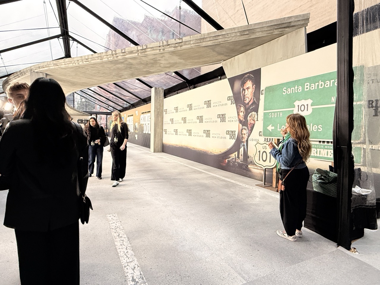 For this red carpet premiere, we transformed a tented environment into a fully immersive highway experience, building out both the visual landscape and structural elements from the ground up. Our scope included designing and installing a custom scenic roadway directly onto the tent flooring, creating the foundation of the environment. Surrounding this, we fabricated and installed large-scale branded walls, including a full-length step-and-repeat and a double-sided feature wall with layered graphics and dimensional logo elements. To establish the setting, we engineered and built a freeway-inspired entrance structure, complete with a custom “Hollywood Fwy 101” sign, as well as an extended overpass feature that introduced verticality and depth to the space. These elements were supported by truss systems and custom cladding to achieve a realistic, industrial finish.We also incorporated street signage and environmental graphics throughout to reinforce the authenticity of the space. Photography: Line 8