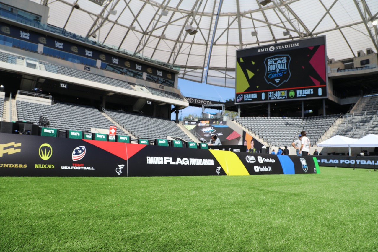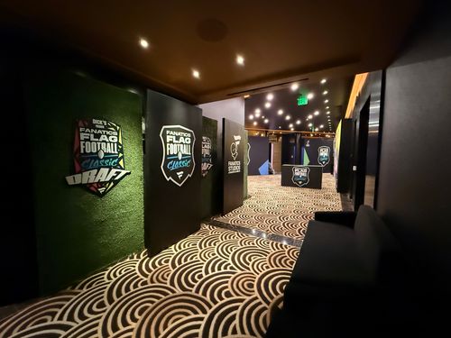 What started as a project in Saudi Arabia quickly shifted to Los Angeles amid global conflict, and our team was tasked to support this quick turn. With the clock ticking and the timeline tightened, our team leaned into our core strength: adaptability. Tractor Vision deployed full fabrication and production capabilities across two high profile venues. At BMO Stadium, the build encompassed large-format carpet and turf installation across part of the field, custom-fabricated coroplast field box walls and weighted separation wall systems with full double-sided graphic wraps for VIP seating, a branded step-and-repeat zone with red carpet and hedge line, a fabric-wrapped Founders Room hard wall, trophy pedestals, and AV with live operator support. At the Waldorf Astoria, the build spanned the full property... a dimensional vinyl-wrapped player entrance arch with acrylic logo treatment, a multi-wall ballroom entry system mixing hard and soft wall construction with dimensional logos, elevator entry branding across two floors, a double-sided exterior archway sign with lift-installed dimensional treatment, a fully fabricated food truck cutout with practical service window, CNC-cut logo walls, large-format canvas and vinyl prints, and full-property graphics from lobby to doors. Both activations were delivered under unified crew and project management, with fabrication, logistics, travel, installation, and strike coordinated across both venues from a single production operation.